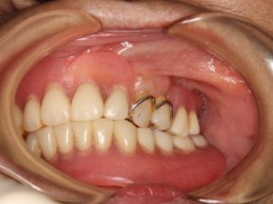 治療後は口元に少し張りも出て、お口の形も左右対称になりました。ご本人は知り合いの人に「あなたは歯が良くていいわね!」と言われたと喜んでました。料理がお好きな方で、色々食べられる様になって嬉しいとおっしゃっていました。