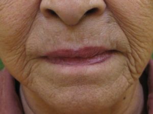 この時の口元は左右の唇が対照的ではないところや下唇の方が前に膨らんでいるところが気になります。